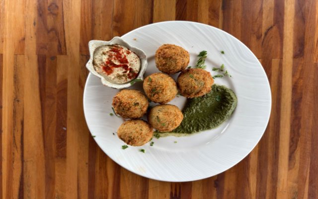 falafel balls (5 pcs) served with green chutney and cashew pesto.